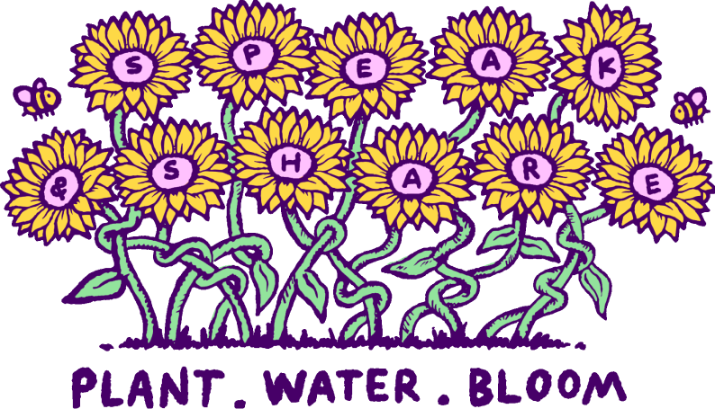 BLOOMNurture your growthWhen growing a sunflower, the most beautiful part is watching it turn towards the sun. For Speak & Share, bloom represents nurturing your own growth, and spreading the message. By doing so, both you and your community will flourish.